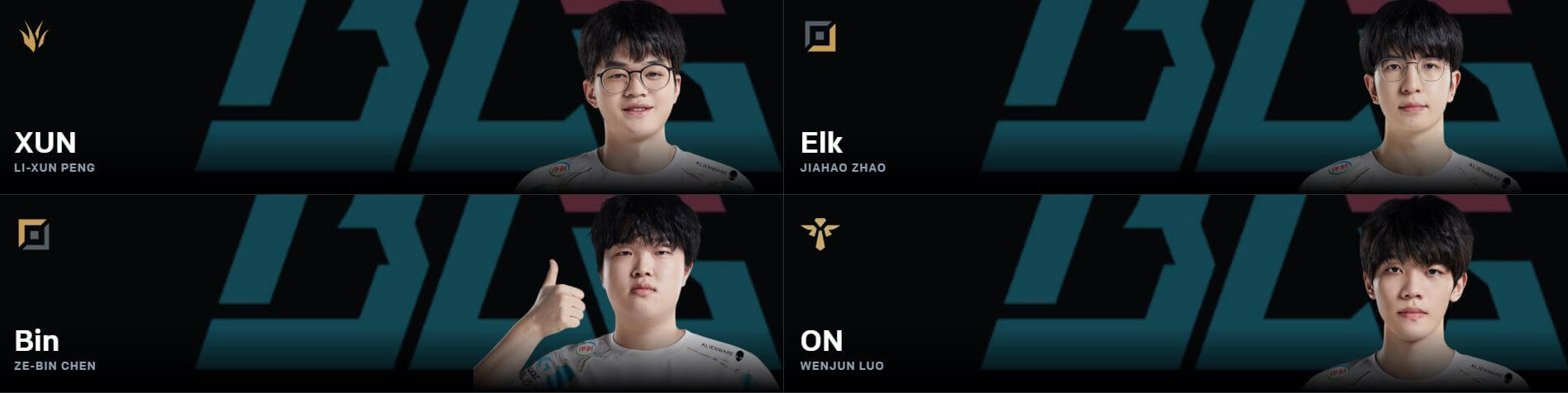 BLG의 각 라인별 선수단은 다음과 같습니다.