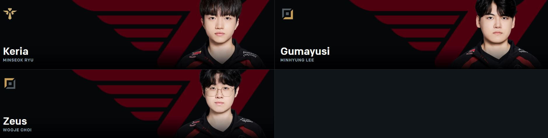 T1의 각 라인별 선수단은 다음과 같습니다.