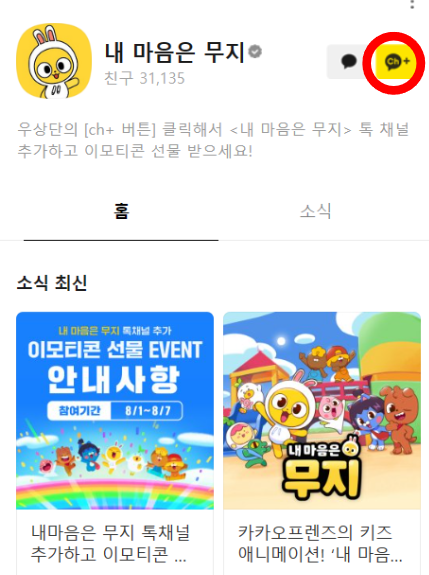 내 마음은 무지 채널을 추가하면 카카오톡을 통해 무료 이모티콘이 지급되니 서둘러 신청하세요.